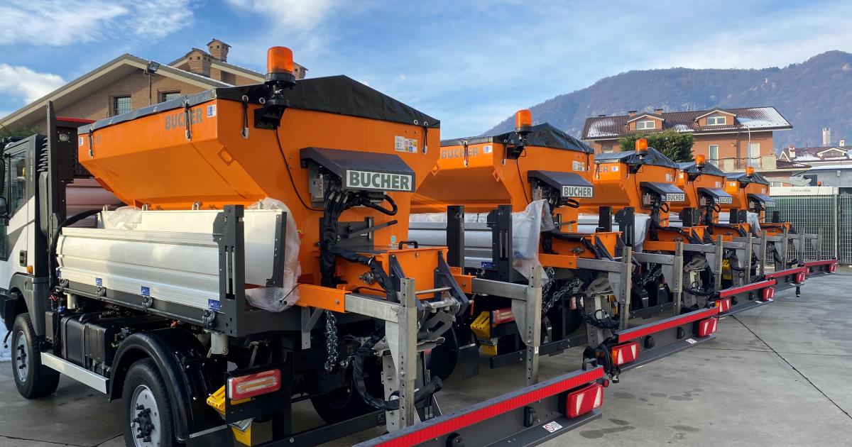 L’azienda ha scelto di accessoriare i propri camion con spargisale di grande portata Bucher One e Bucher UniQa per rispondere alle esigenze dei propri clienti in fatto di prevenzione invernale in contesti extra-urbani o per strade a grande percorrenza. A completamento della flotta sono stati allestiti mezzi di più piccola por-tata con spargisale Bucher One H con tramoggia più contenuta e accessoriati di lama Bucher Polyx S, combinazione ideale per gli ambienti urbani che richiedono un intervento tempestivo di rimozione neve per assicurare la sicurezza delle strade.
