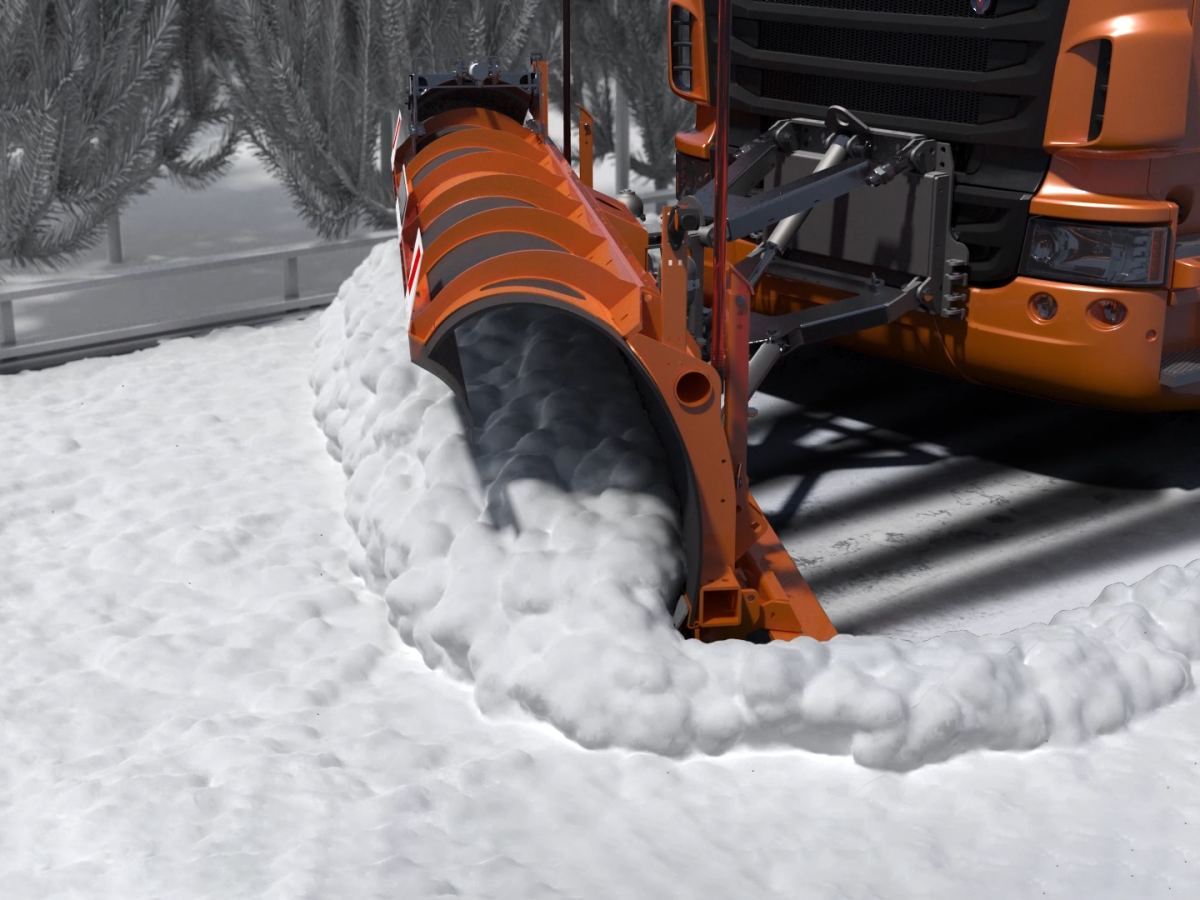 Lo scudo frontale è costituito da un robusto telaio in acciaio ad alto limite di snervamento e dal volvente in polietilene HD riciclabile avente un profilo curvato e aperto, per favorire l’evacuazione di grandi quantità di neve anche ad alte velocità. Il polietilene consente un minor carico sull’asse anteriore del veicolo e una miglior scivolosità della neve con minore potenza richiesta al veicolo.