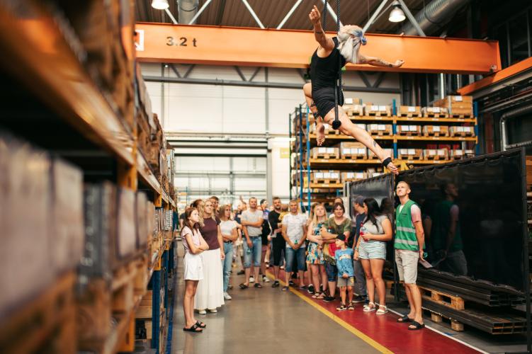 Ekskursijas vadīja zinoši uzņēmuma darbinieki, savukārt īpašu "odziņu" piešķīra daudzveidīgas performances - pianista uznāciens lāzergriešanas hallē, gaisa akrobātika metināšanā un daudzas citas.