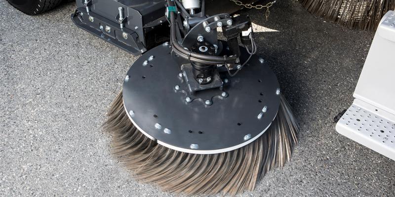 Aggressive "unhanded" 44" leading arm digger type gutter brooms. In-cab down pressure and variable speed control 0-135 rpm. Three pre-set lateral working positions (narrow/standard/extended).